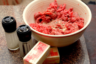 Being in the business of raising great beef I am always pouring over meatish recipes and burger recipes are as wide flung as they come. Some call for just the basics; salt, pepper and maybe some onions. The other end of the spectrum calls for chopped black olives, feta cheese and oregano all stuffed neatly into the center of two patties but this one contains a twist, Butter. Leave it to the genius’s atAmerica’s Test Kitchen to start playing with melted butter and adding it to the meat before it’s cooked. I know that many burger joints moisten their burgers and steaks with butter just at that ultra critical moment as it leaves the oven but this recipe calls for melting the butter first adding it to the cold meat in order to allow it to mix throughout the meat and then resolidify.