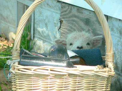Elvira’s one boy thinks he is getting away with it by hiding behind a basket of tools while the other one couldn’t care less if I see him laying down on the job.